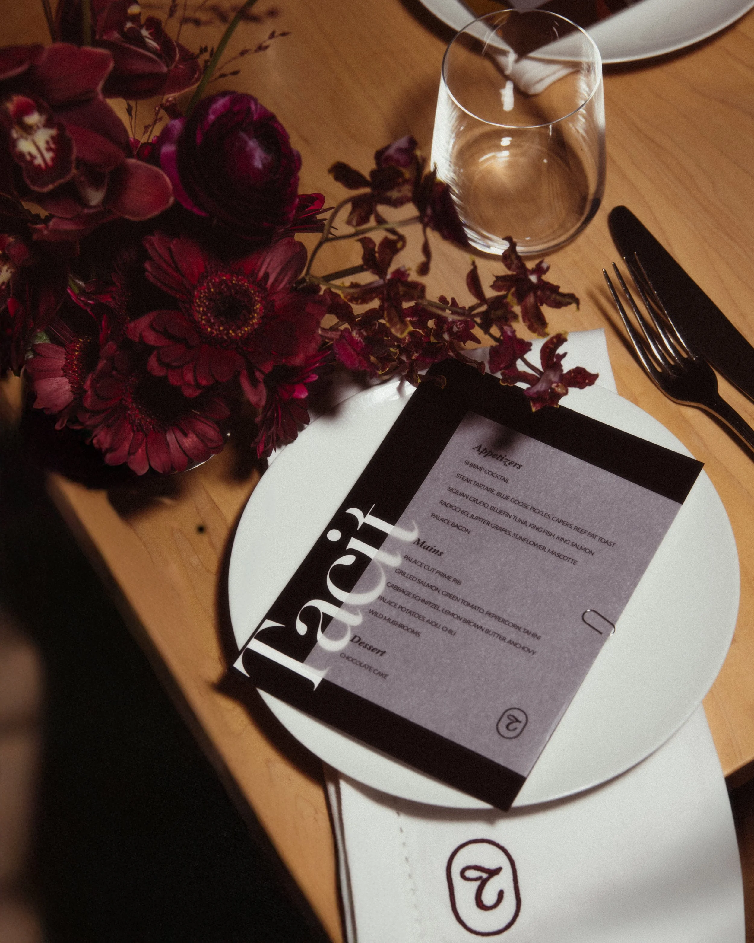 The world-building — crafting the event’s visual identity, directing signage and printed assets, shaping spatial layout and décor, advising on custom builds, styling tables and product scenes, and creating event landing pages.